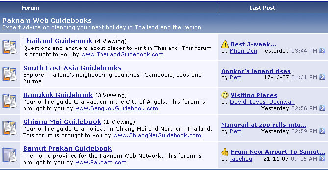 www.ThailandQA.com as this page has all the latest information. There are links at the top of each page for the Paknam Web Forums main page where you can see the list of all forums. You can also click the "Paknam Web Forums" banner at the top.