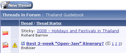 This is a screenshot just showing the forums towards the top of the page. We have forums for many different subjects. Just choose the one you think fits best to your question. Let's say you want to post a question about a holiday you want to do in Thailand. So, click on the "Thailand Guidebook" forum link.